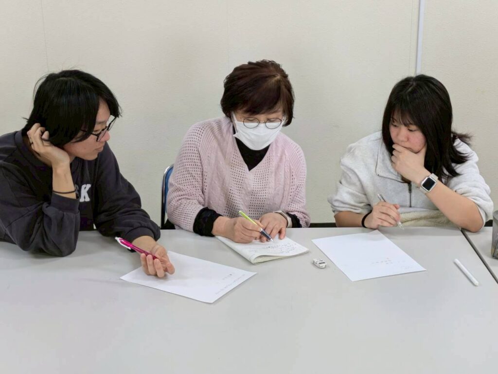 久永先生の聞く人を引きつける自己紹介からもう学びは始まりました。ここから学生たちは先生の魅力に引き込まれていきました。それから学級開きで先生がよくされている二つのワークを体験しました。「えんぴつクルリンパ」と「口に二画加えて出来る漢字づくり」です。どちらも楽しく取り組む事ができるワークですが、そこには集中力、子ども同士の教え合いやコミュニケーションを育むという目的が隠されています。楽しみながら学級づくりができるということです。