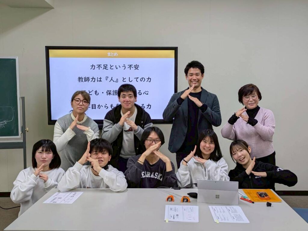 授業を終えた学生は、教育現場でバリバリ活躍されている先輩の実践から多くの事を学ぶことができました。また、先輩のような教師になりたいという思いを持つことができたようです。教師として初めの学級開きの不安も解消できたと感じました。